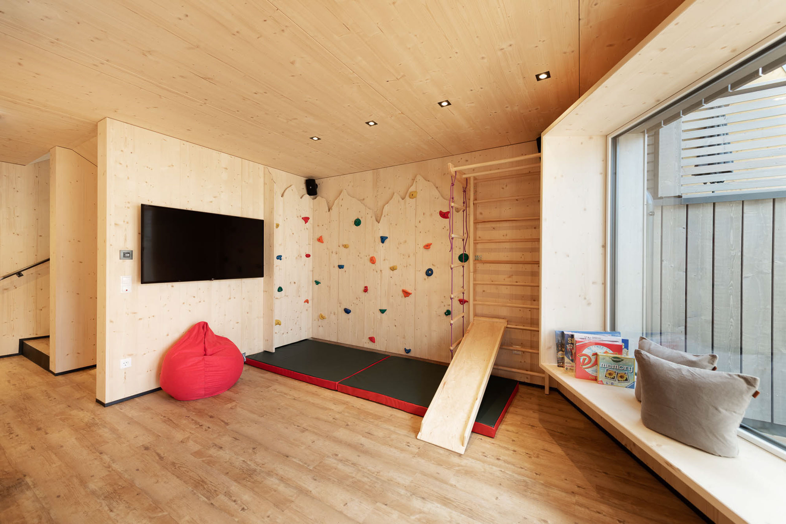 Ein modernes Haus und großzügige Zimmer als Rückzugsort vom Alltag. Fünf separate Schlafzimmer, jedes mit eigenem Bad, bieten Platz für Familien und Gruppen. Die Kleinen werden den Kinderbereich lieben, mit Kletterwand, Discokugel, Playstation und vielem mehr. Die gut ausgestattete Küche lädt zum gemeinsamen Kochen ein und im eigenen Garten mit Terrasse und Grill können Sie die Natur entspannt genießen. Ein großer Ski- und Fahrradraum im Keller bietet reichlich Platz für Ihre Sommer- oder Wintersport-Ausrüstung. Die Parkgarage mit direktem Zugang zu den Zimmern rundet das Gesamtpaket ab.