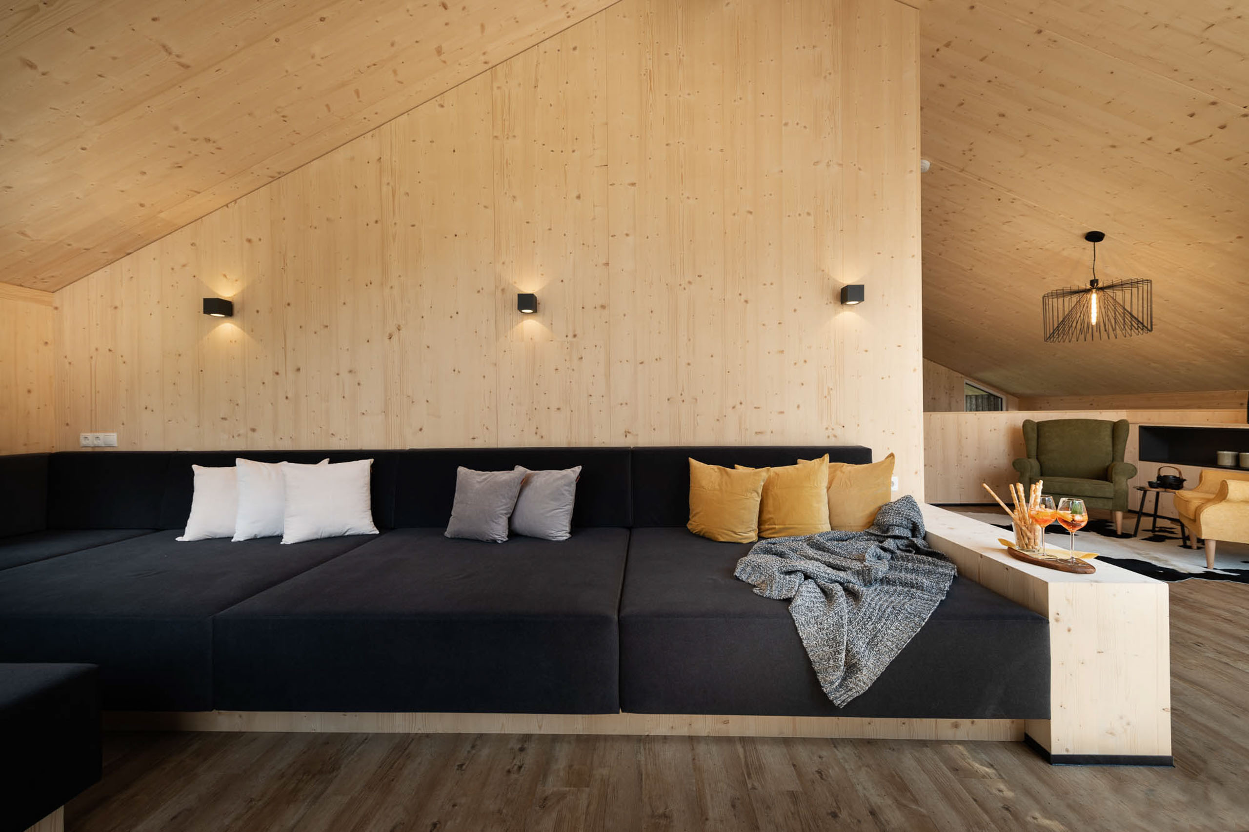 Das Ferienhaus Dorf in Neustift im Stubaital bietet mit seinen 260m2 Platz für Familien oder Gruppen mit bis zu 18 Personen. Das Haus besticht schon äußerlich durch die warme Holzfassade aus Lärchenholz. Mit seiner bewusst gewählten Aufteilung in private und gemeinsame Bereiche, der offenen Atmosphäre und dem besonderen Zusammenspiel mit der Natur macht es den Aufenthalt in Neustift zu einem ganz besonderen Erlebnis für die ganze Familie.